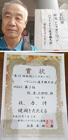 頑張らないバドミントン研究会会員の皆様が、 各地の大会に参加し、頑張らないノウハウを実際に実践したり、ラケットを使用していただいたりして見事賞状をGETされました。