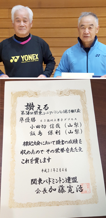 2019年2月3日 第38回関東シニアバドミントン選手権大会 65歳以上男子ダブルス 準優勝